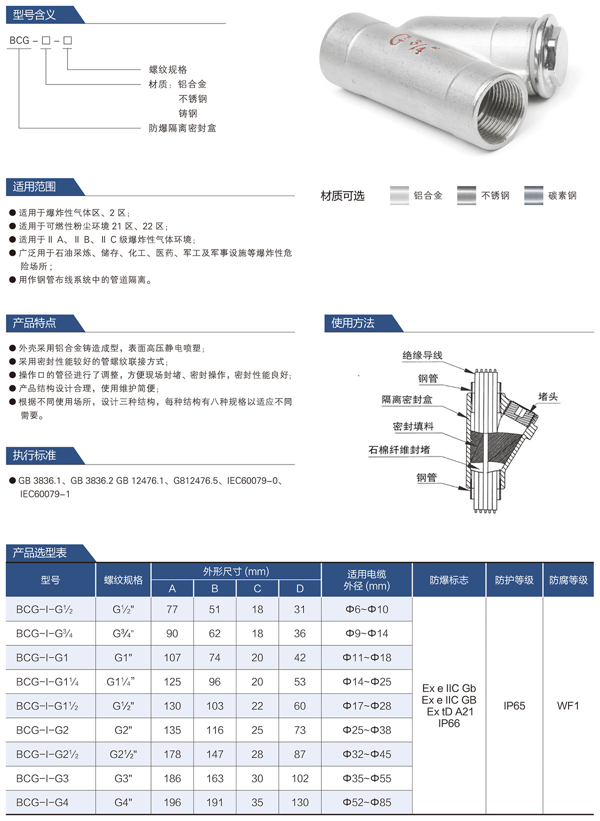 BCG防爆隔离密封盒系列