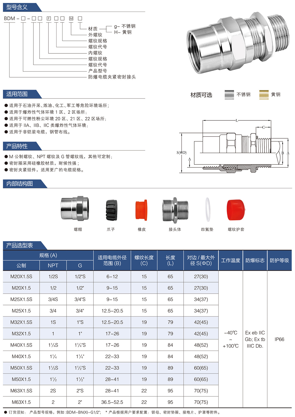 BDM防爆电缆夹紧密封接头系列