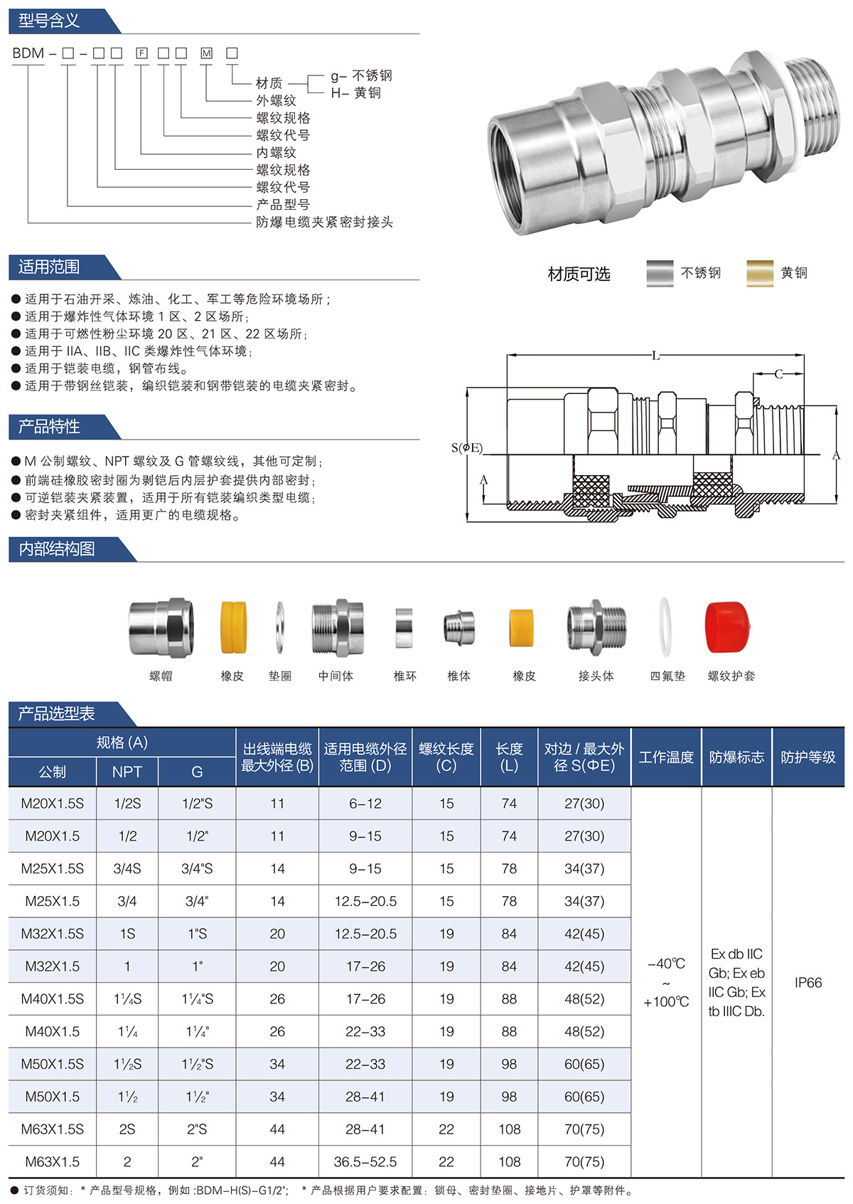 BDM防爆电缆夹紧密封接头系列