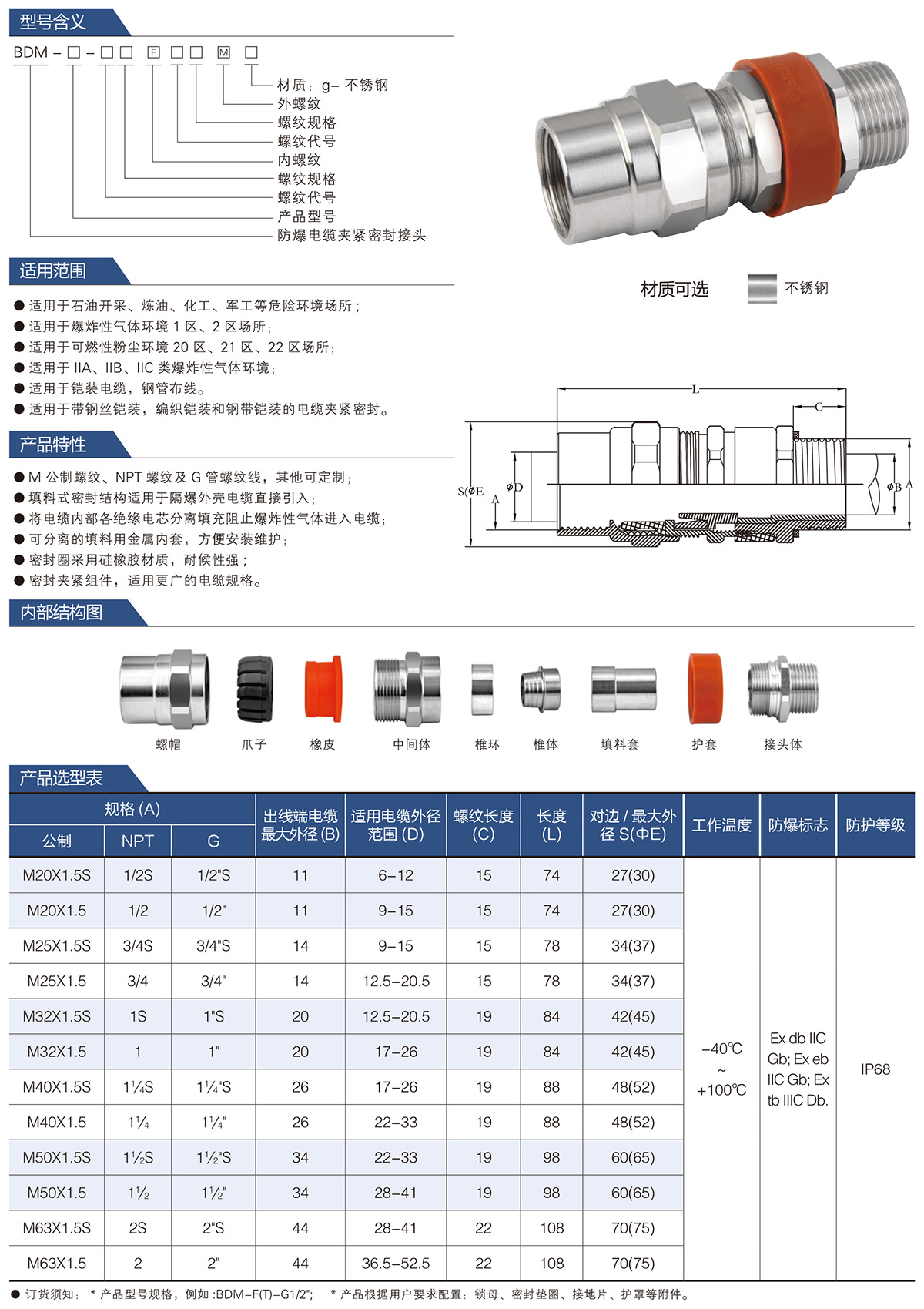 BDM防爆电缆夹紧密封接头系列