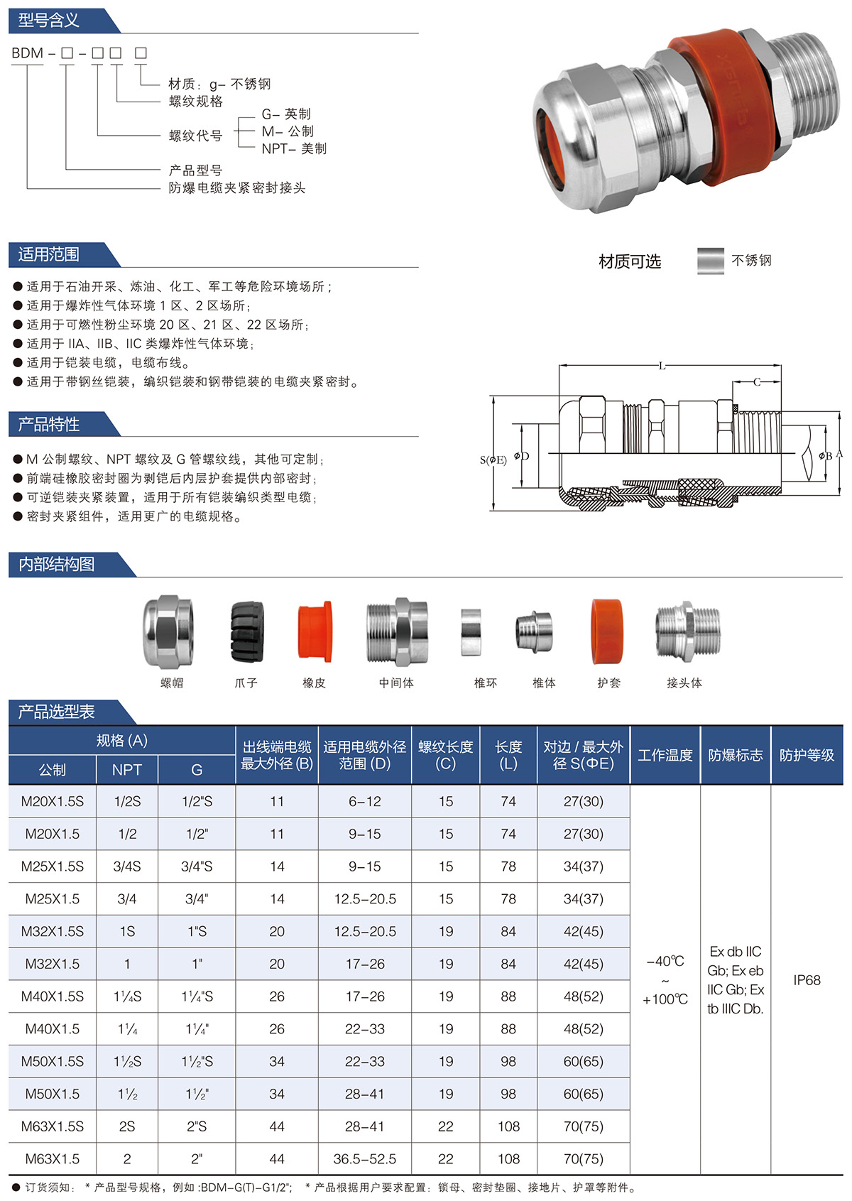 BDM防爆电缆夹紧密封接头系列