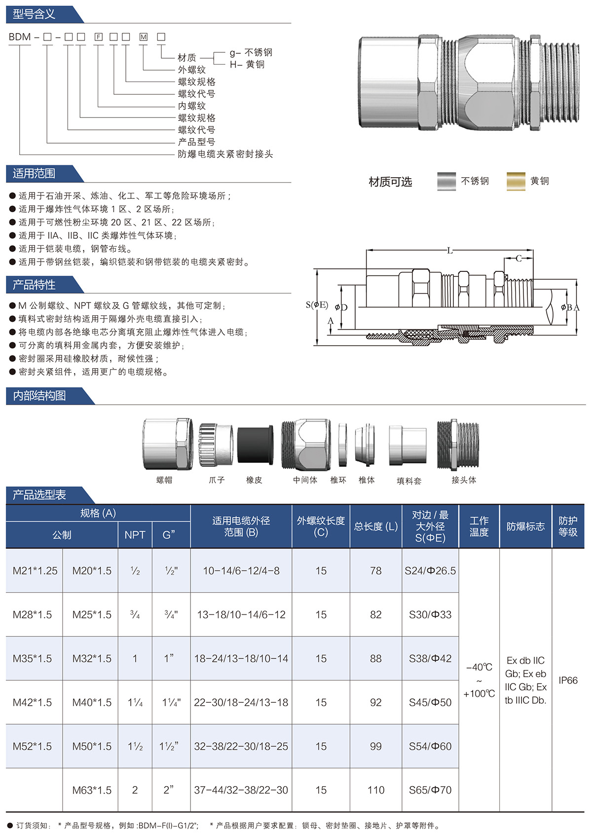 BDM防爆电缆夹紧密封接头系列