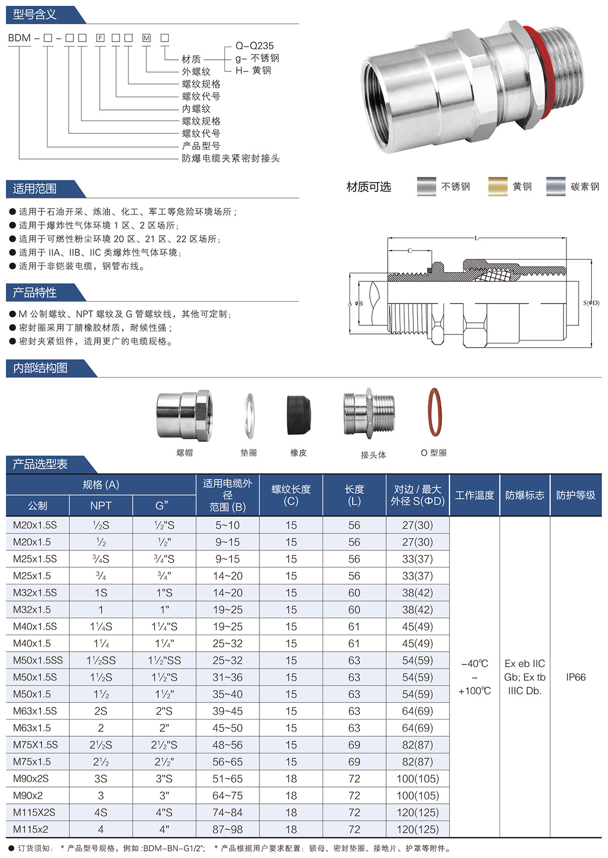 BDM防爆电缆夹紧密封接头系列
