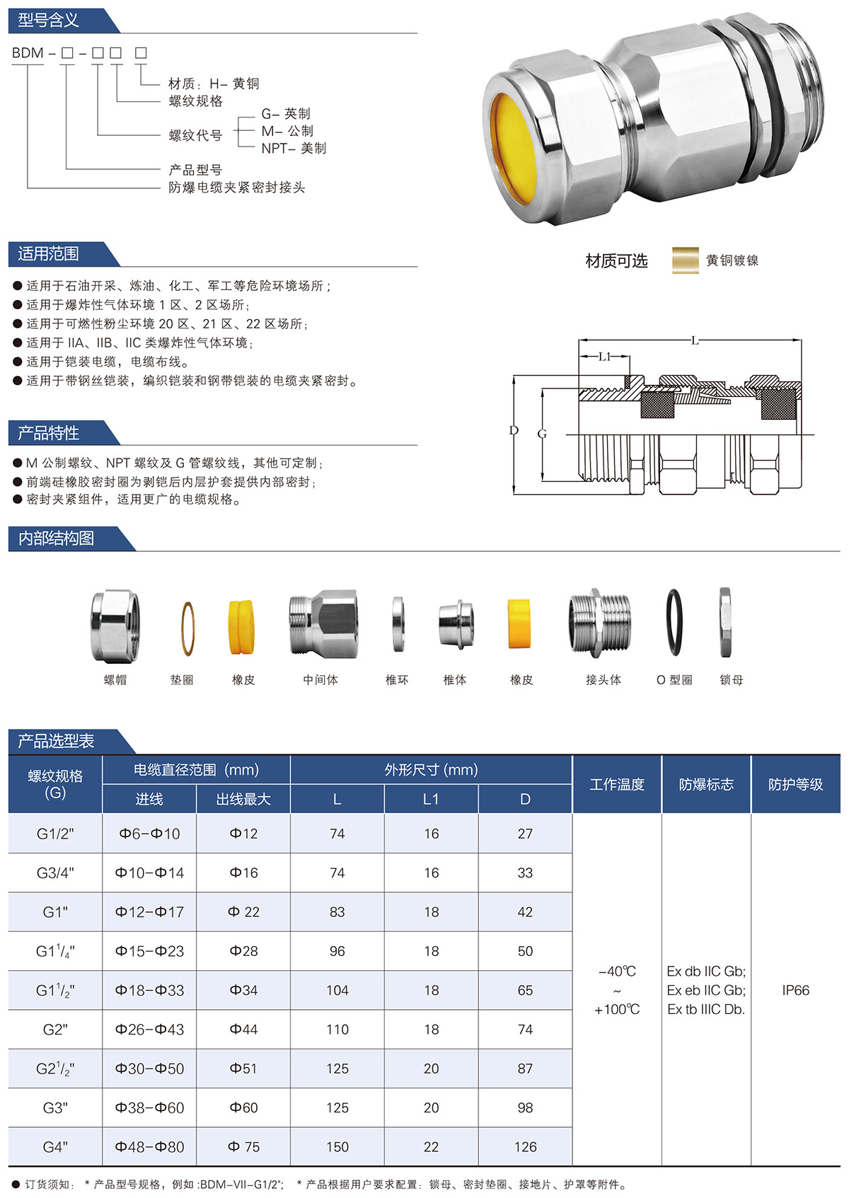 BDM防爆电缆夹紧密封接头系列