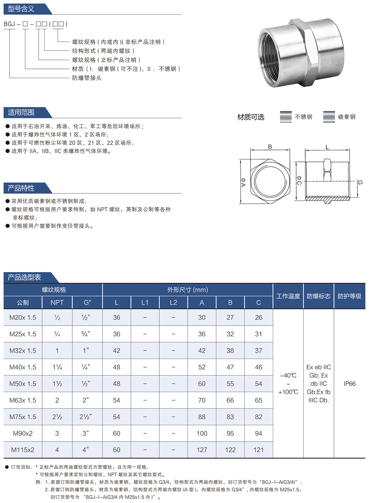 BGJ防爆管接头 B型系列 一端内一端外螺纹
