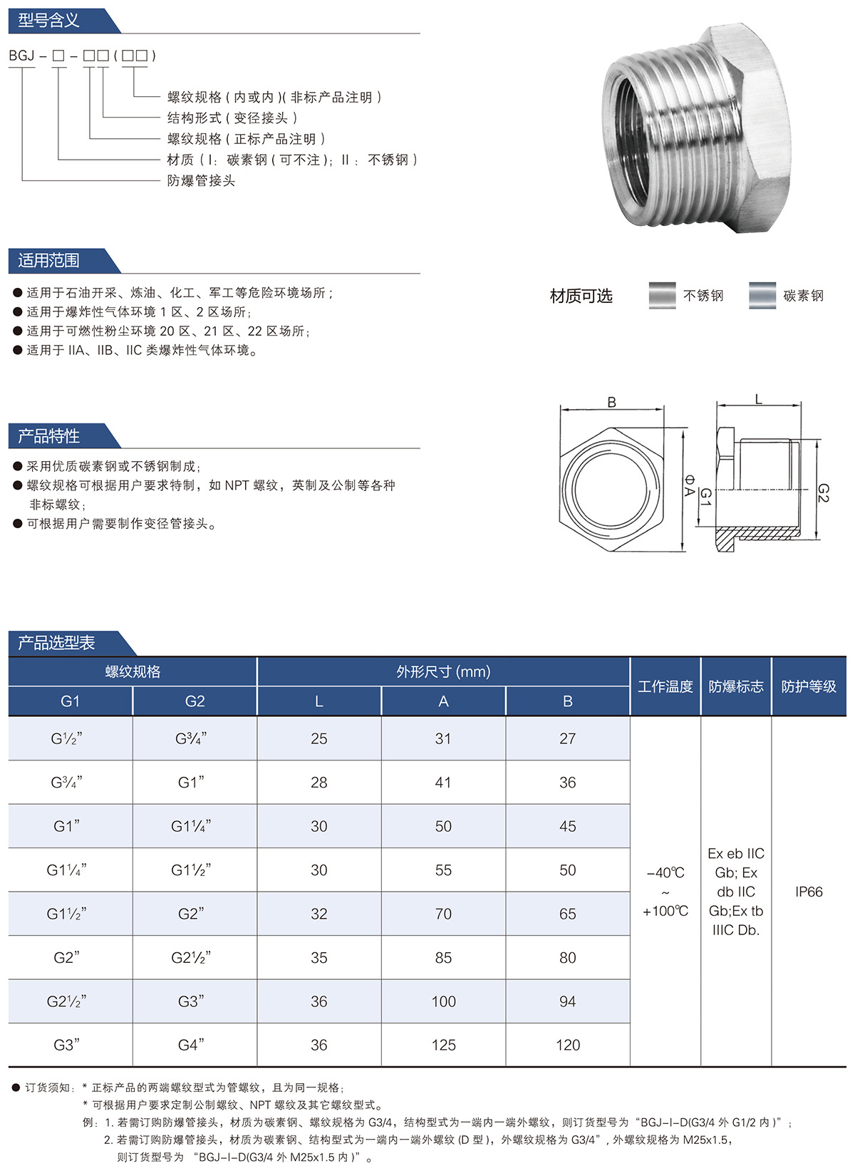 BGJ防爆管接头 D型系列 变径接头